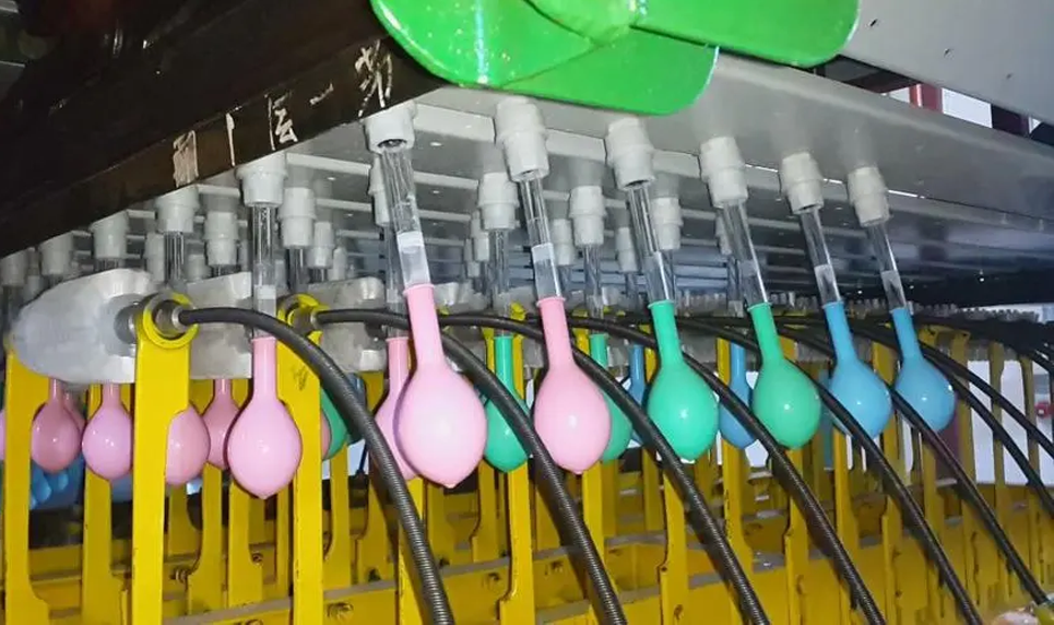 The natural latex balloon production line adopts continuous production method and direct immersion method. The latex film is uniform and the color is bright. Various specifications and special-shaped
